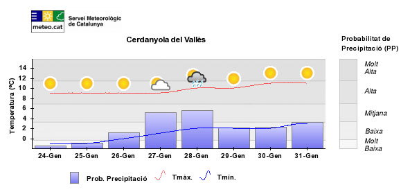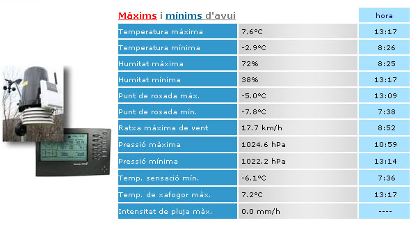 Així, l’onada de fred s’ha deixat notar al nostre municipi on les temperatures mínimes han experimentat una caiguda espectacular, de pràcticament 10 graus, en només 3 o 4 dies.