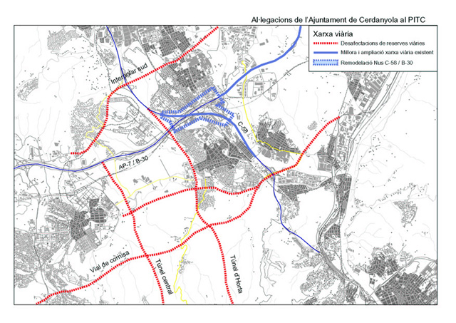 En el moment de presentar les al.legacions els responsables municipals consideraven que el principal dèficit de la mobilitat metropolitana és la mancança de transport públic i les al.legacions perseguien potenciar la connexió entre Cerdanyola i Barcelona, però també amb la resta de poblacions de l’entorn amb una aposta ferroviària on el túnel d’Horta sigui l’última opció i com a connexió amb transport públic. El govern municipal proposava a la Generalitat la desclassificació de la Via de Cornisa i plantejaven com a alternativa al Vial Interpolar la modificació dels accessos a la B-30 per tal de garantir la fluïdesa del trànsit.