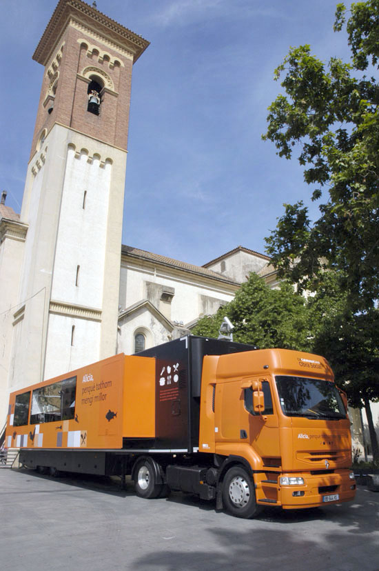 15 de maig de 2012 a les 0:00El vehicle, un projecte de Catalunya Caixa i la Fundació Alícia, és una unitat mòbil amb equipament didàctic per reflexionar sobre l’alimentació saludable. El bus, que romandrà a la plaça fins dissabte, ofereix una exposició i diversos tallers per a públic escolar, familiar i per a persones amb restriccions alimentàries com diabètics i celíacs.