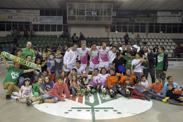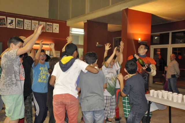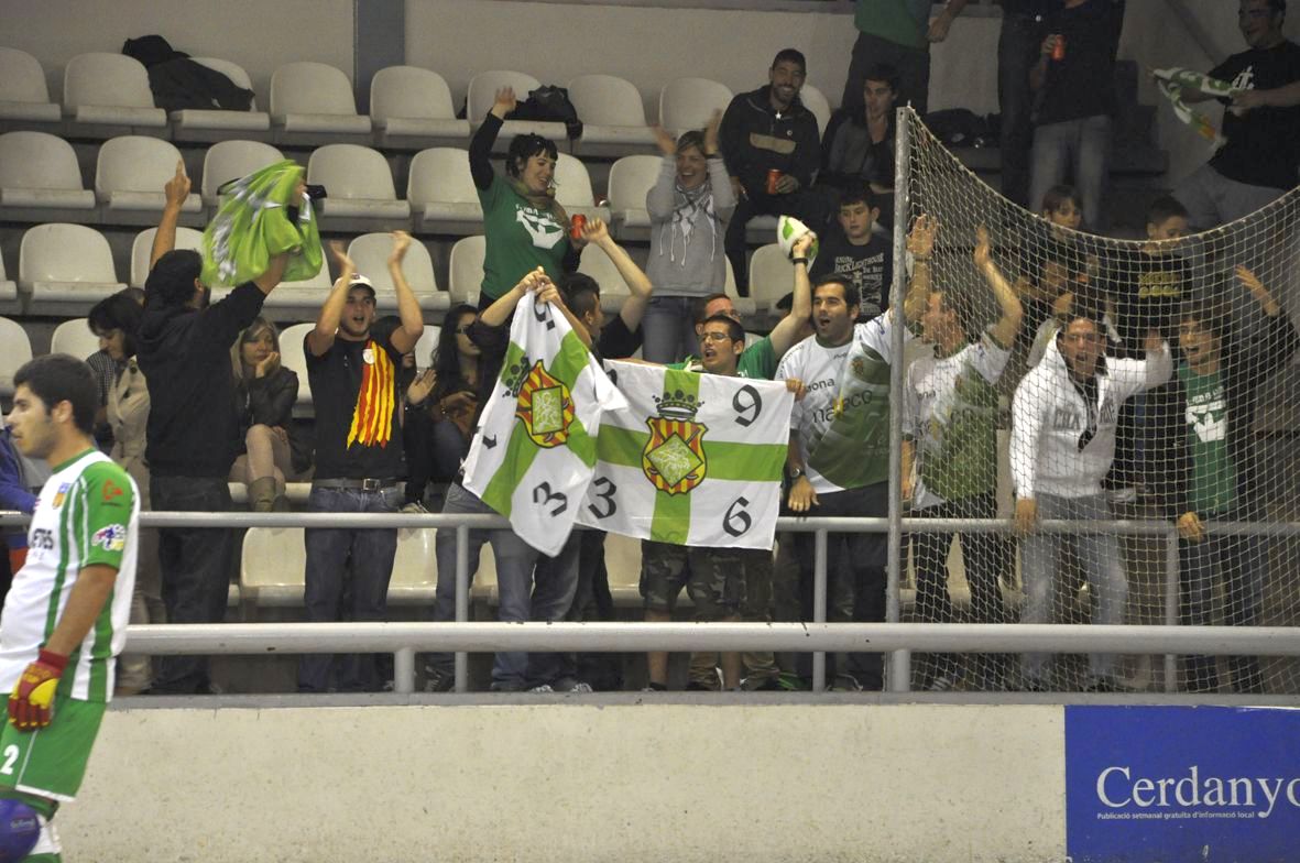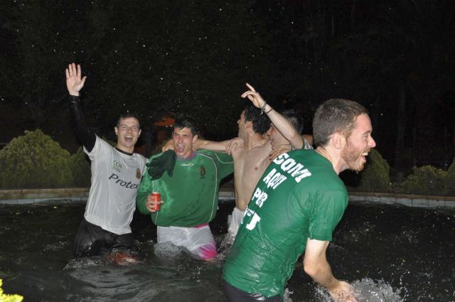 Una vegada finalitzat el partit els verd-i-blancs van festejar l’ascens amb l’afició que es va aplegar al Pavelló de Can Xarau. El bany a la font de la Plaça de la Pau no va faltar.