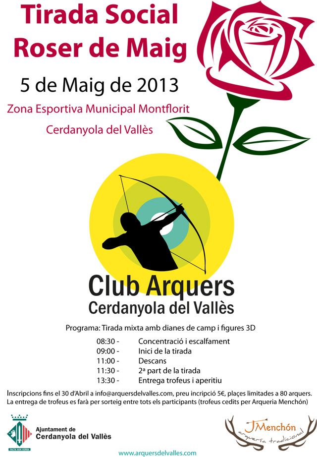 El diumenge 5 de maig el Club d’Arquers de Cerdanyola del Vallès organitza la primera Tirada Social Roser de Maig que està oberta a arquers i arqueres d’altres club en totes les modalitats i categories.
