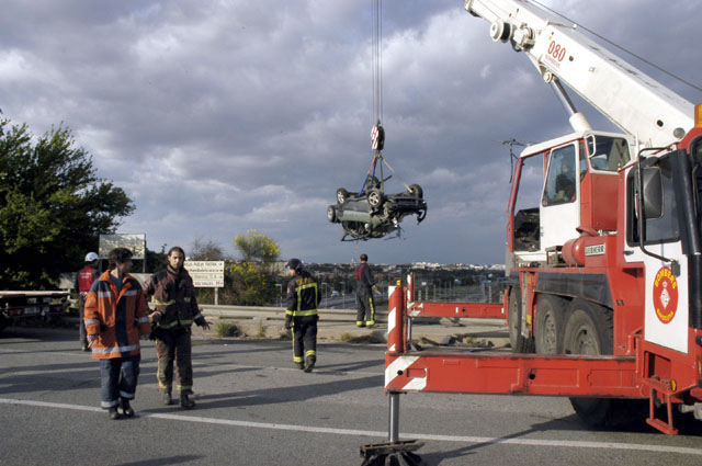 El conductor, Alfonso M. M., de 42 anys, veí de Barcelona, va quedar atrapat a l'interior del vehicle i va haver de ser rescatat pels bombers de la Generalitat. A continuació va ser necessària la actuació d'una grua per poder extreure el turisme d'entre les bigues.