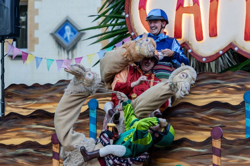 Camelvá, la nova proposta de la companyia lleidatana Campi qui pugui, obria divendres el FIT Festival a la plaça de l’Abat Oliba amb les intervencions de la presidenta de Bambalina, Elvi Vila, i la regidora de Cultura Andrea Borrego, a més de dues de les voluntàries més joves de l’entitat.