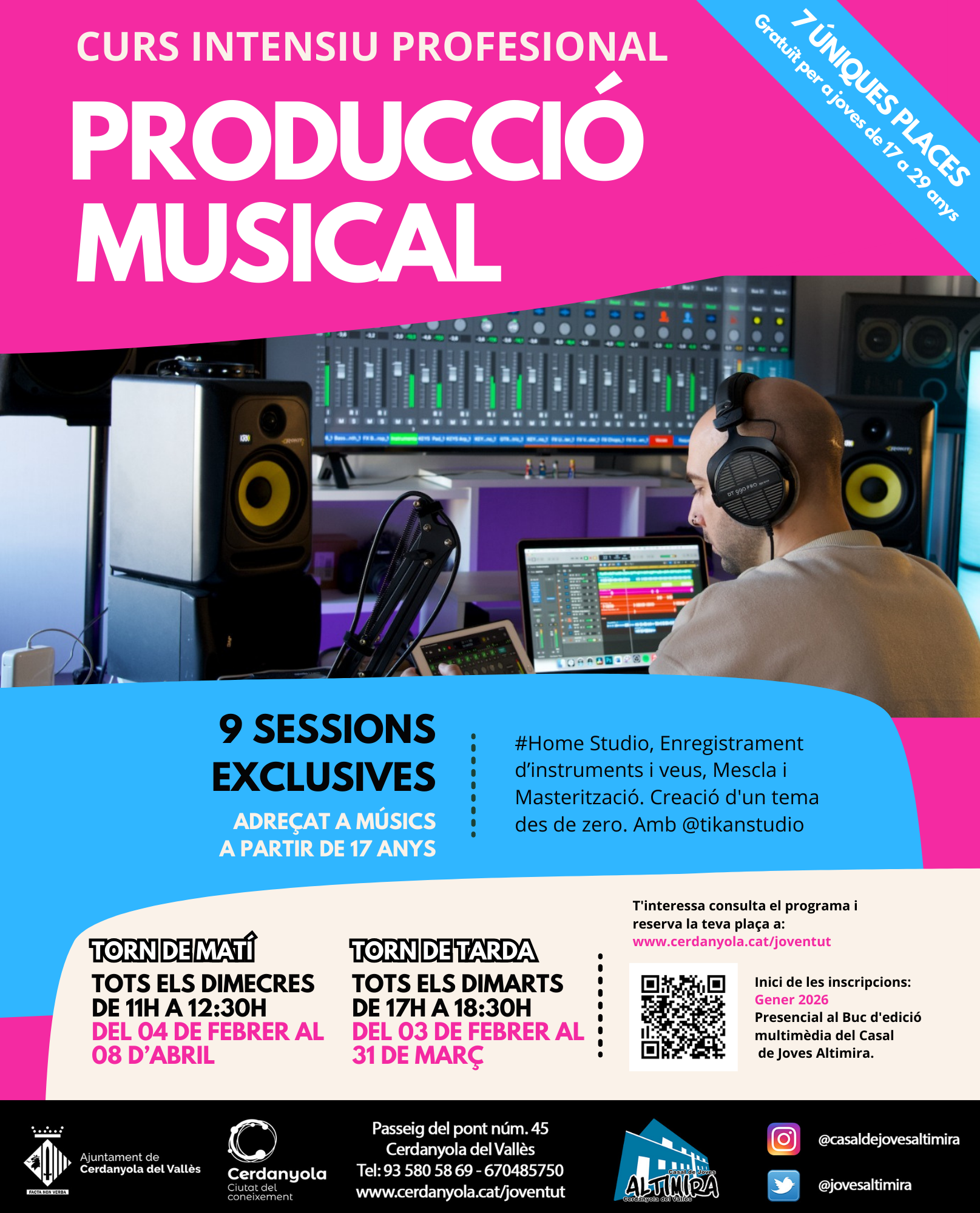 La informació completa i les inscripcions estan disponibles al web de Joventut https://www.cerdanyola.cat/joventut/cursos-artivat-ensonat