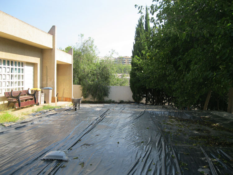 L'actuació de confinament suposa la col.locació d'una capa de material geotèxtil per segellar les restes d'amiant i a sobre es col.loca una gruixuda capa de terres per acabar el confinament. L'ús del terreny com a pati de l'escola no podrà fer florir novament amiant. Eulàlia Mimó.