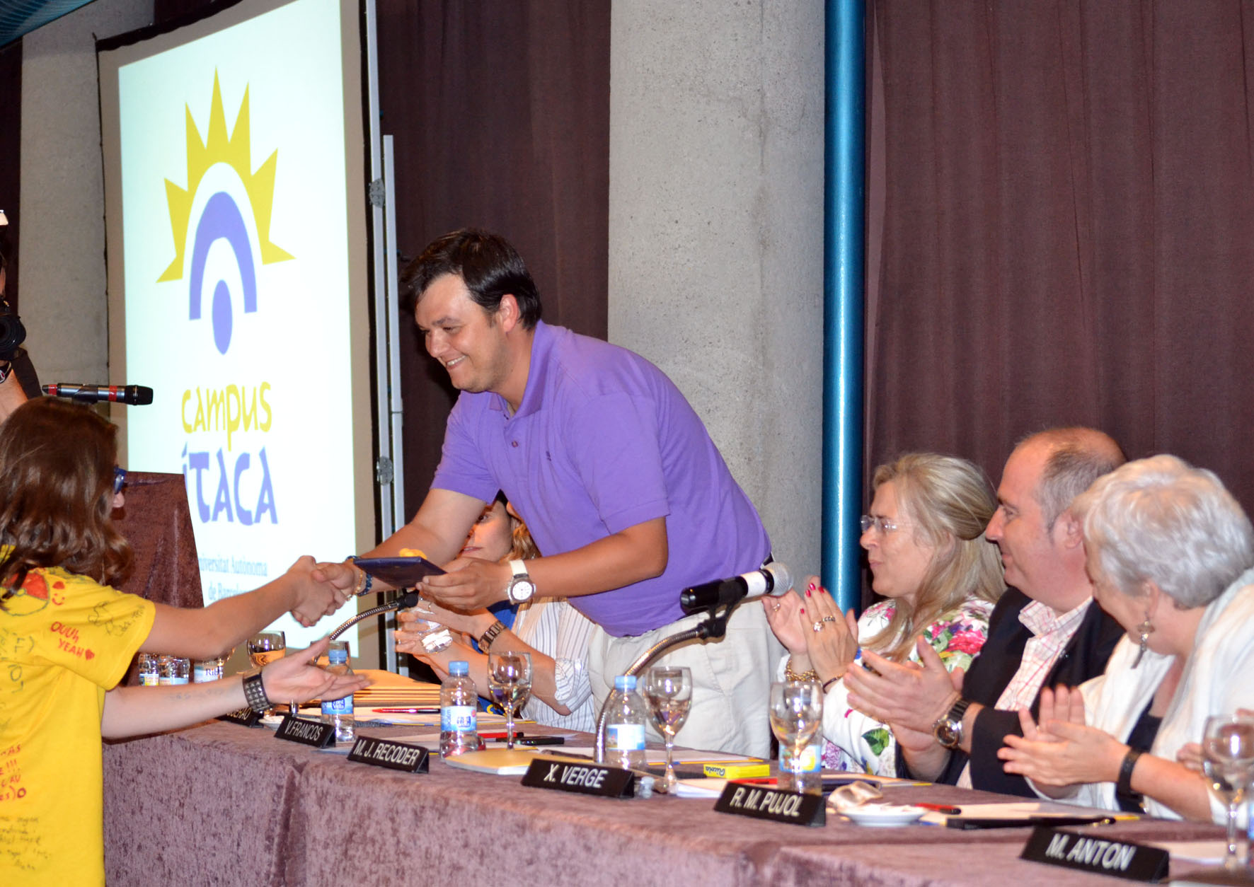 En la seva intervenció va adreçar-se especialment a les noies i als nois dient-los que la societat se sent molt orgullosa de la feina que han fet, al Campus Itaca. Cal seguir-la, formant-se adequadament a la universitat però també com a persones. Fent costat als que no han tingut la sort de participar al Campus Itaca i ajudant a refermar els valors solidaris de la nostra societat. En aquest sentit va recordar-los el mite de Sísif perquè no defalleixin i segueixin sempre endavant. Perquè “vosaltres sou el present i el futur, les persones en qui dipositem el nostre projecte de societat”.