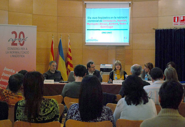 El Centre Cultural de Ripollet acollia la presentació de l’estudi Els usos lingüístics en la retolació comercial de les poblacions de Cerdanyola, Ripollet, Montcada, Barberà, Badia i Sant Cugat, elaborat pel Consorci per a la Normalització Lingüística i la Secretaria de Política Lingüística. Els objectius del treball eren, d’una banda, veure el grau d’acompliment de la Llei de Política Lingüística tot comparant les dades d’un estudio elaborat el 2002 amb les recollides el 2007, cinc anys després. L’observació buscava conèixer la presència del català en la retolació principal i informativa en els establiments estudiats. Ho foren tots els situats als eixos econòmics dels municipis del CNL Vallès Occidental 3. L’any 2002 s’estudiaren 3.282 comerços i cinc anys després, 3.538.