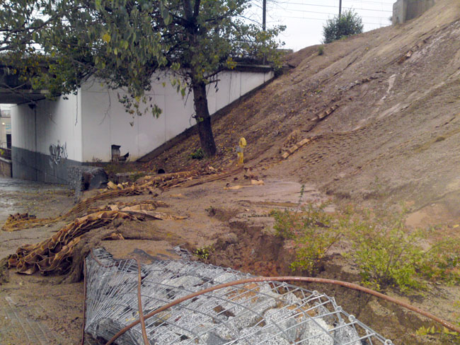 16 de novembre de 2011 a les 0:00La pluja caiguda ahir a Cerdanyola va provocar una esllavissada de terres al talús de l’accés Nord de la ciutat, arrossegant la xarxa geotèxtil instal·lada i obligant a tallar temporalment el trànsit de vehicles.